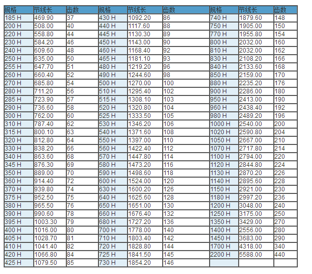 同步帶技術(shù)參數(shù)